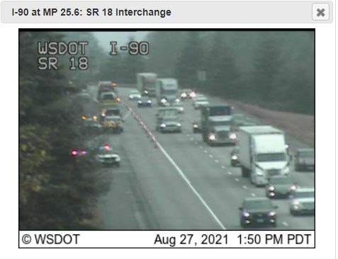 The off-ramp from I-90 westbound to SR 18 (MP 26) was closed during the incident and during the investigation snarling traffic from SR-18 to Preston. Story will be updated when the incident is cleared