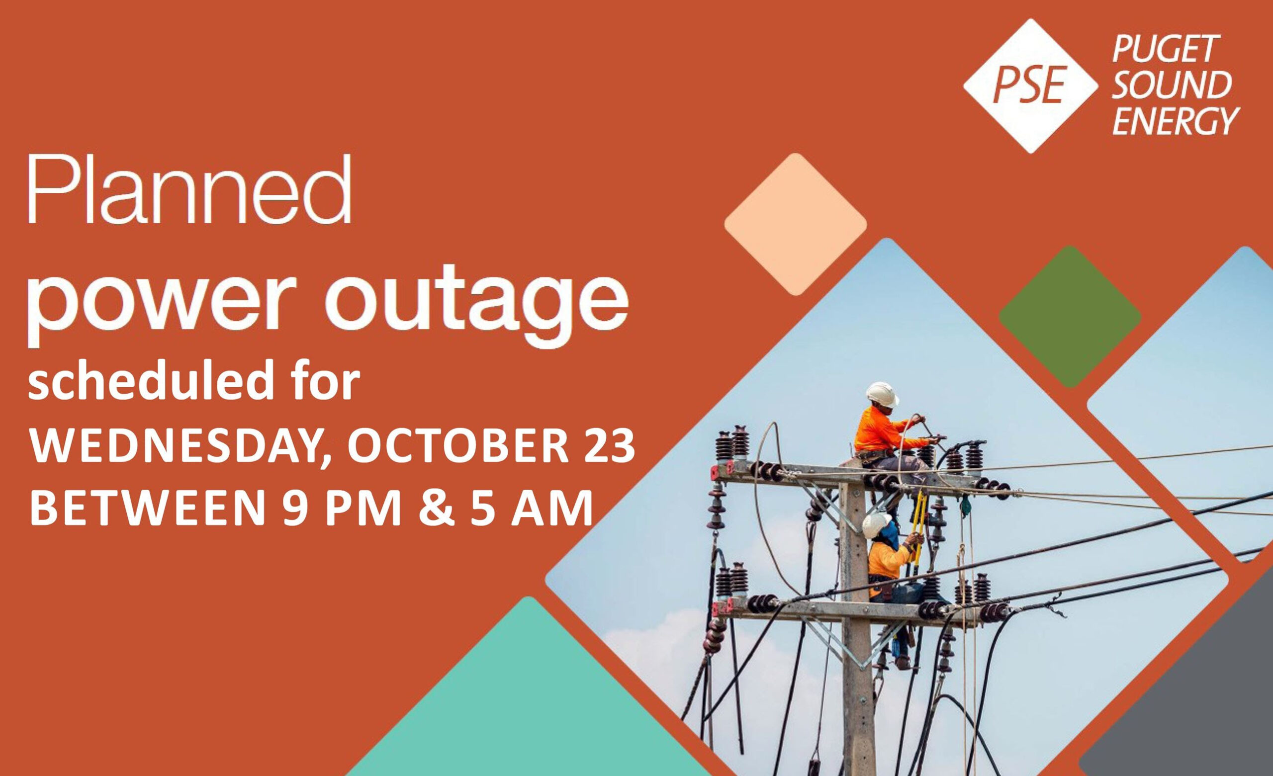 On the night of Wednesday, October 23, Puget Sound Energy (PSE) will conduct a scheduled power outage affecting residents along Riverside Drive SE and surrounding streets.