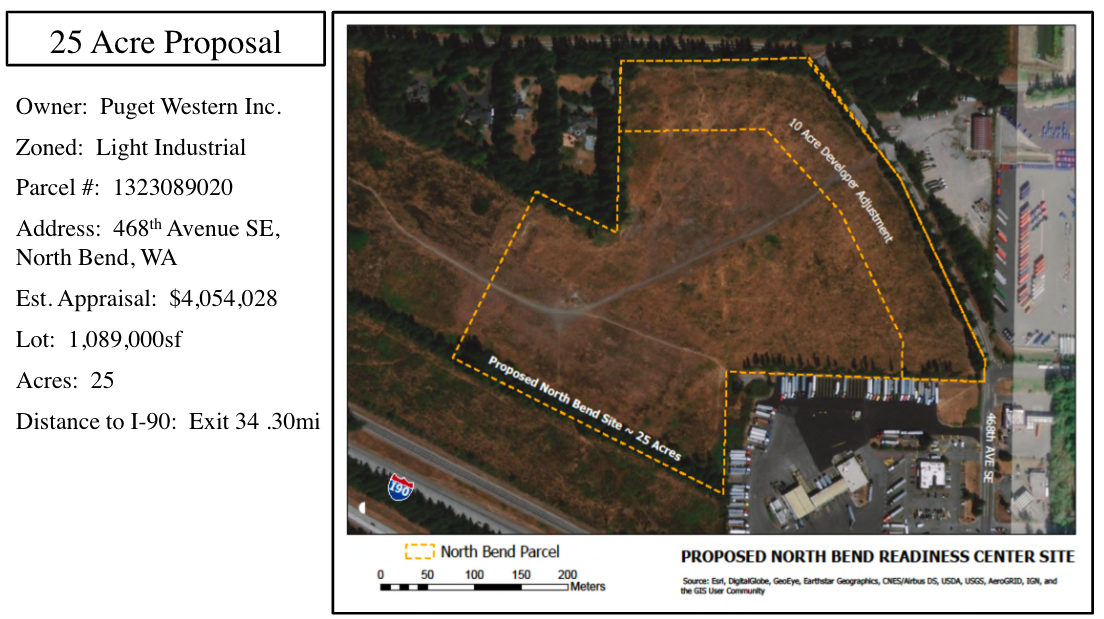 According to Miller all previous meetings with the Army went well, with the biggest wild card being federal budget and funding for moving the center from Seattle. He added, “I think that the public information released by the Washington National Guard leads us to believe that this [North Bend] is their preferred location so far in the process.”