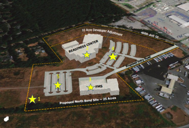 According to KUOW, the Army wants to move its large Washington National Guard Readiness Training facility out of Seattle – where it says the site cannot satisfy the requirements of its mission – to North Bend on a 35-acre site adjacent Truck Town.