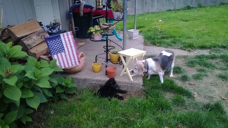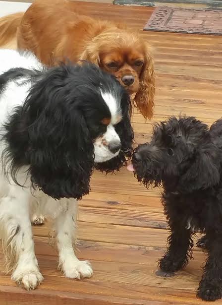 Amanda Higley and her four dogs kindly responded to my Facebook request also and I trekked out to her house for a playdate. We managed to successfully play with Balcom the Beagle, Reggie the Cavapoo and the Schnoodle duo Lola and Tucker. Okay… not so much with her fellow Schnoodles, but all in all a good time was had by all. Hey, we only lost her out the fence pickets once or twice so I call that a success. I hope she didn’t scare the goats too badly. We’ll talk about “coming when called” in a future blog.