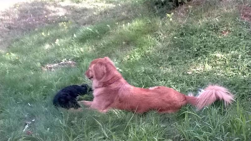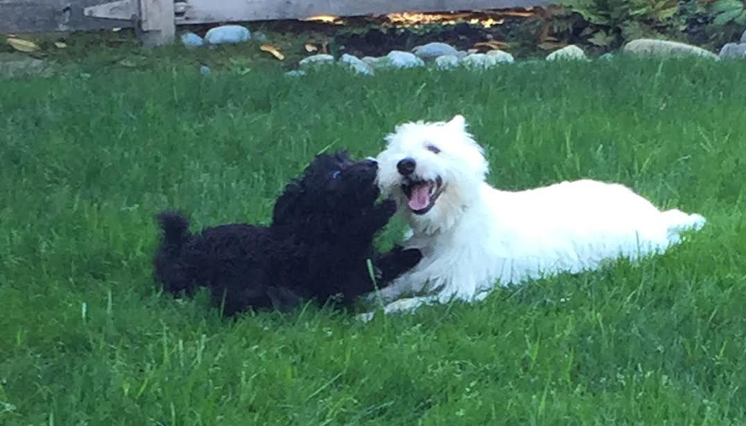Our first playdate was with Liz and Aiden Schomber and their 12-week old Cocker Spaniel puppy, Luke. He was a perfect first playmate. Similarly sized and aged, they got on like a house afire and she actually slept for the rest of the day! I greedily asked for another playdate the next day and we watched with delight as they rolled around Liz and Aiden’s backyard.