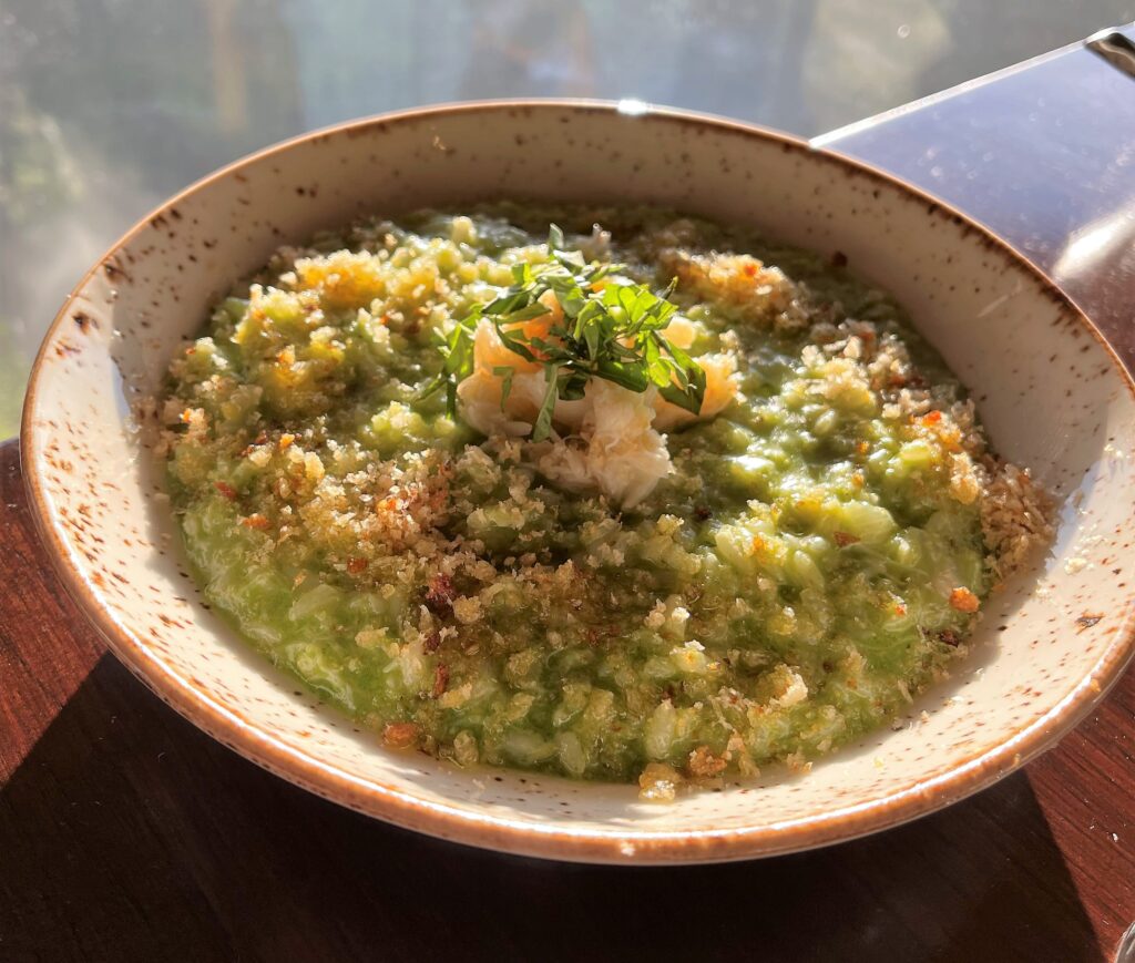 I also managed to steal a bit of Susan’s main course, the Risotto Verde and decided I would have guarded far more fiercely had I been her. The green dish tasted, to me, like a bright summer day. Susan was far more descriptive in her review, saying, “the al dente grains were perfectly cooked but also rich and creamy with the addition of the grana cheese. The Dungeness crab gave it a little sweetness I enjoyed.”