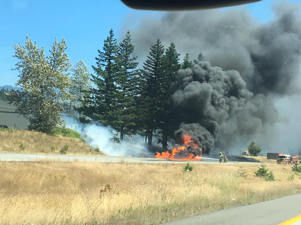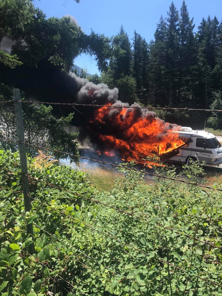 At approximately 12:45PM Sunday, July 19th, crews responded to an RV that had caught fire on westbound I-90 near Truck Town exit 34 – just east of downtown North Bend.