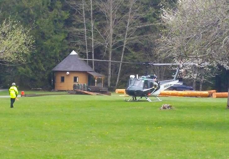 Guardian 2 was able to quickly hoist the injured woman off the mountain top Sunday afternnon and deliver her to the SAR command post at Valley Camp, located about 7 miles east of North Bend.