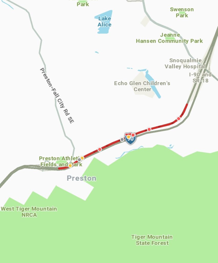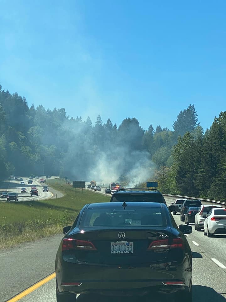 WSDOT noted an incident westbound 90 at milepost 23 blocking the right lane at 3:12. The State Patrol arrived on the scene followed shortly by the Snoqualmie Fire Department.