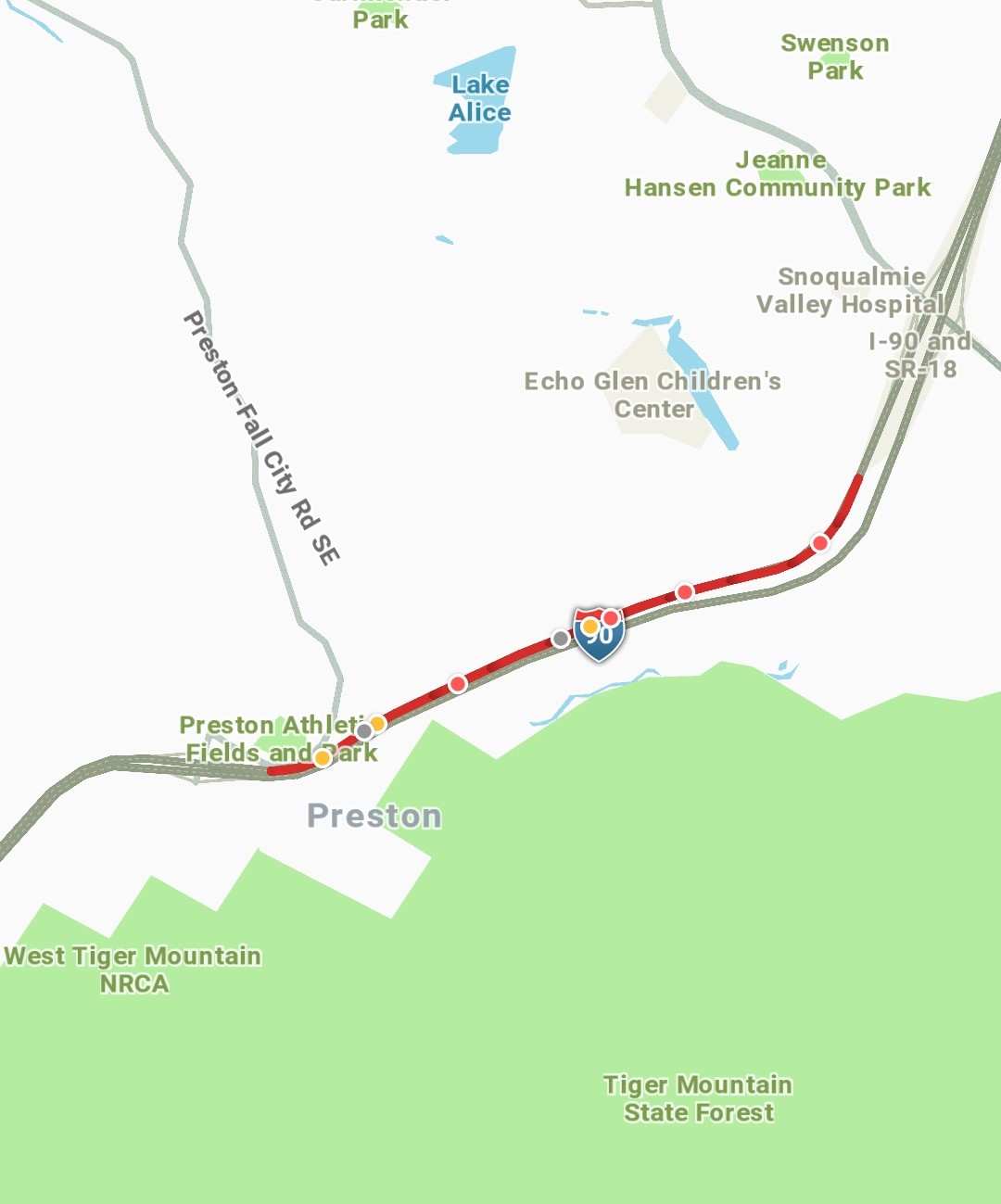 Additionally at 3:30 PM the WSDOT twitter account reports a collision blocking the right lane on SR 18 westbound just east of I-90.