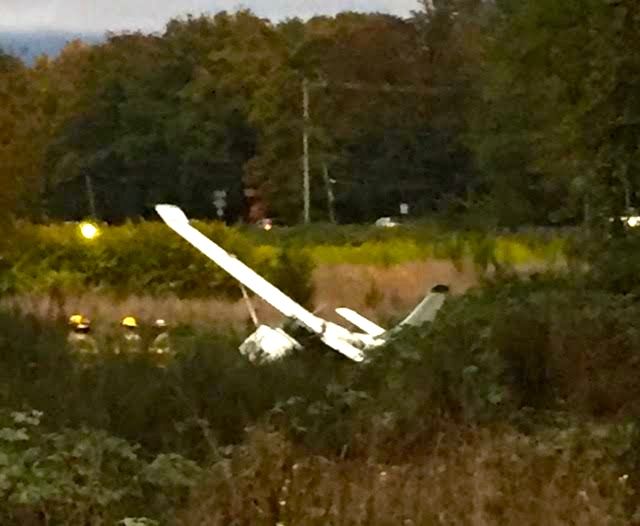 The single-engine Cessna 206 made a crash landing around 6:30PM. Residents of the area sad the pilot did a good job avoiding wires, the highway, roundabout and and the restaurant.