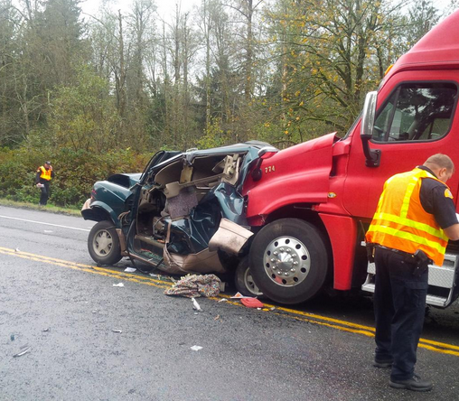 Washington State Patrol (WSP) Trooper Chris Webb stated via Twitter that the serious injury accident involved two semi trucks and one car, occurring about a half-mile west of I-90.