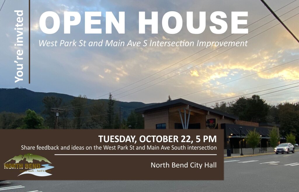 Join city staff and project partners at North Bend City Hall on Tuesday, October 22, from 5 to 6:30 p.m. for an Open House. This event is an opportunity for the community to share insights into what’s working and what could be improved at this key intersection.