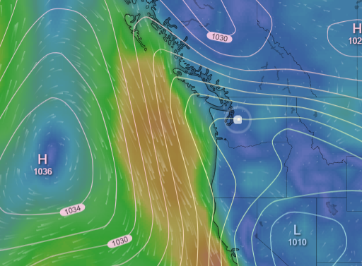 As you may have heard, a now progressing pattern shift is parking dominant high pressure off the coast, making the PNW more prone to north winds, which pull in colder air and potentially the development of Lows from the colder N/W track.