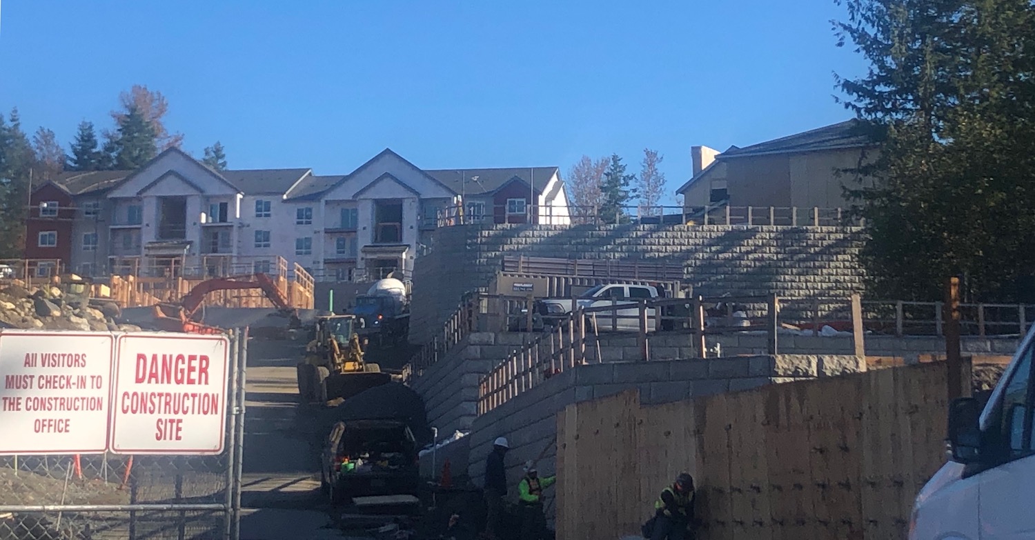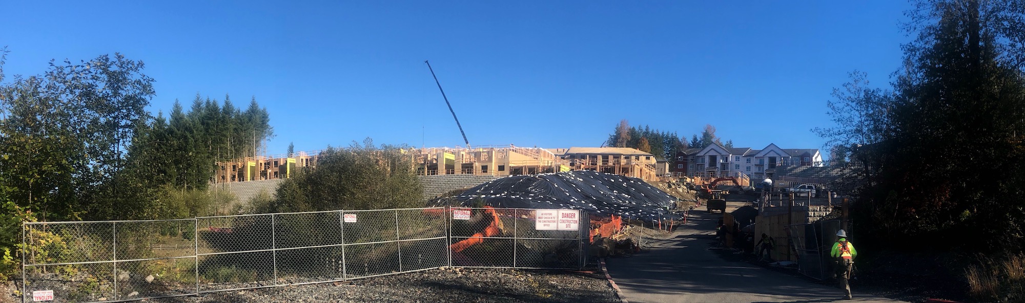 The development is located on Frontier Ave in the Eagle Pointe neighborhood of Snoqualmie Ridge – and is not very visible from the street – but the vantage point from the back parking lot of Snoqualmie Valley Hospital gives a better [visual] perspective of the size and scope of the project.