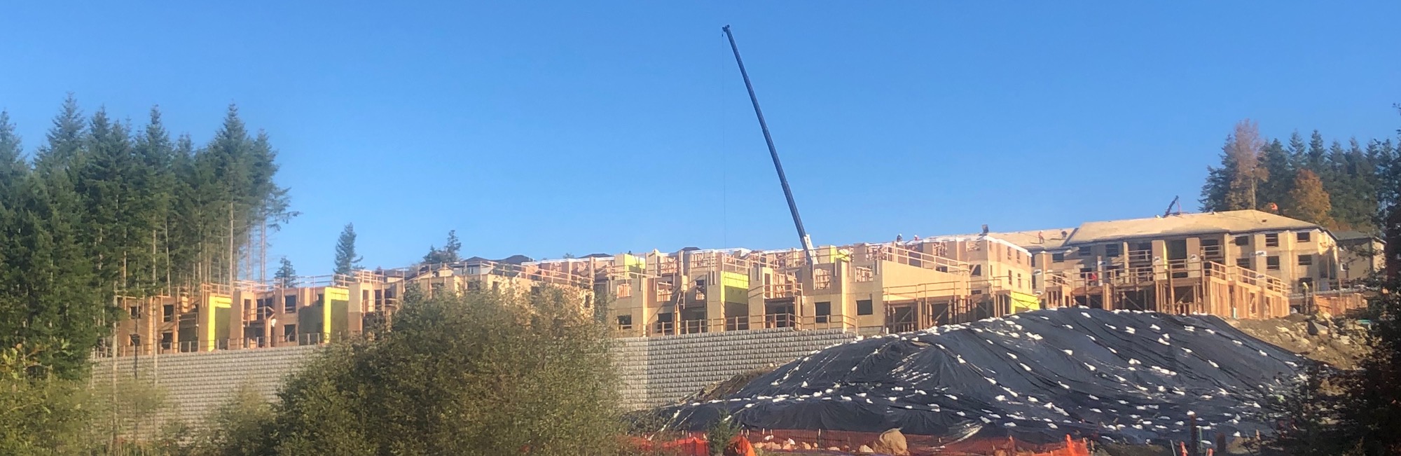 Back in June, crews were just starting to frame the first buildings of a new, large affordable housing project in Snoqualmie Ridge. A lot has changed in 3 1/2 months.