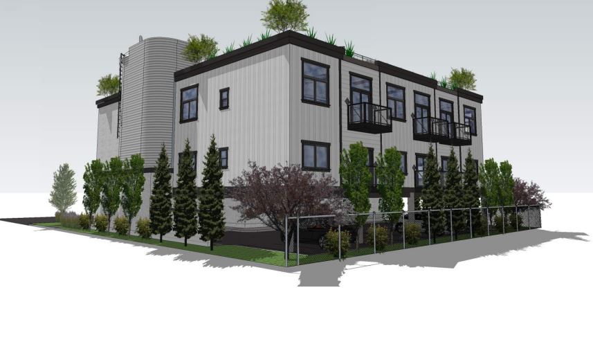 The proposed use of the building would be retail on the first floor, with the upper floors consisting of eleven market-rate apartments with a rooftop deck. *Note: project renderings include a stairway silo design feature that the Historic Review Board did not approve.