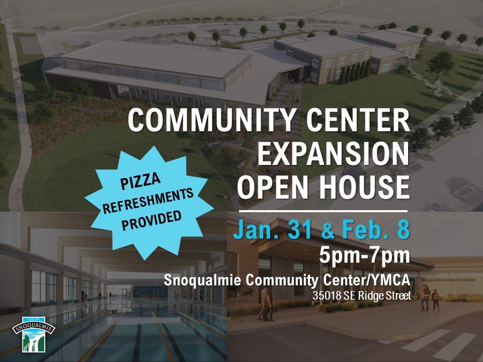 The City of Snoqualmie invites residents to attend two open house events to learn about the Snoqualmie Community Center Expansion Project.