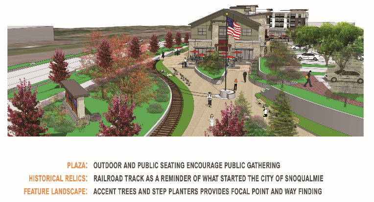 To see the all specs of the planned development and conceptual renderings see the City of Snoqualmie Hotel/Retail Development website page.