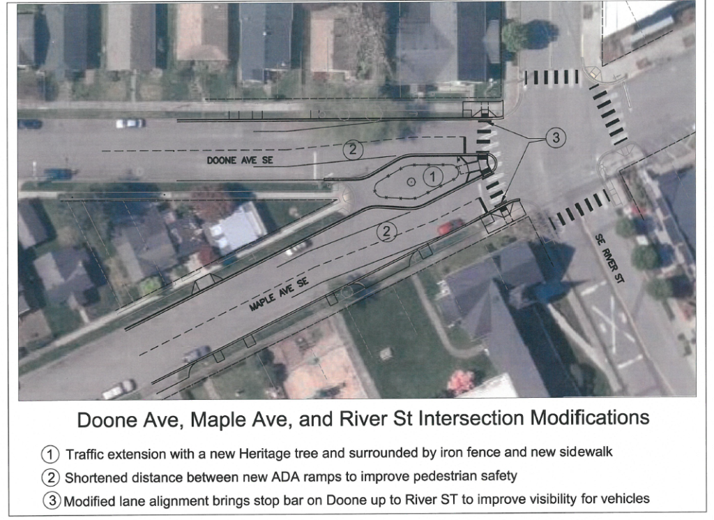 The City’s ongoing Tree Streets Project is bringing notable improvements to the intersections of River/Maple/Doone and King/Maple/Olmstead.