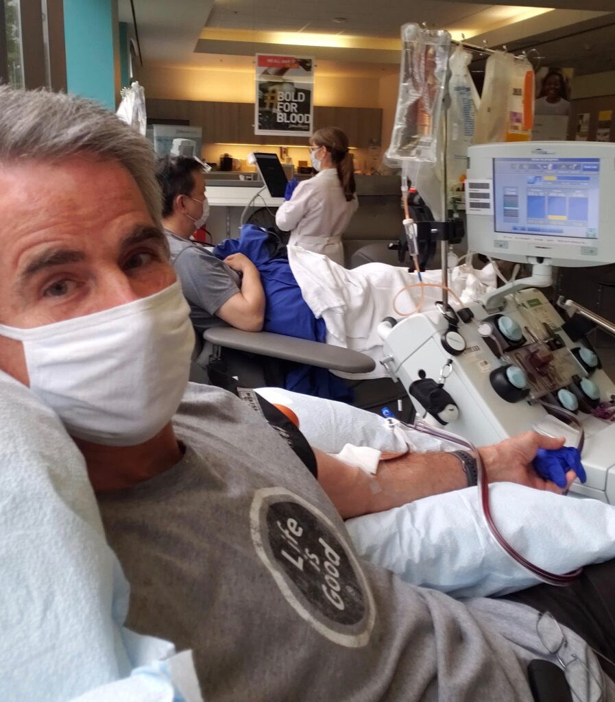 Larson first provided blood samples at the University of Washington for multiple COVID-19 vaccine studies. Once his antibodies were verified, he was referred to Bloodworks Northwest for the 840ml plasma donation.