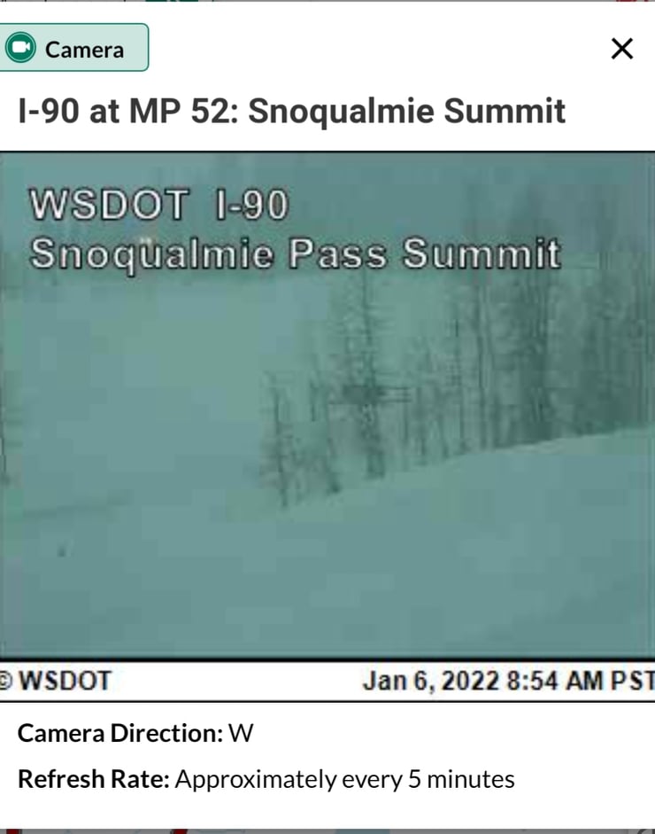 Due to dangerous weather conditions from falling trees and avalanche danger, I-90 Snoqualmie Pass will remain closed until Saturday, Jan. 8.