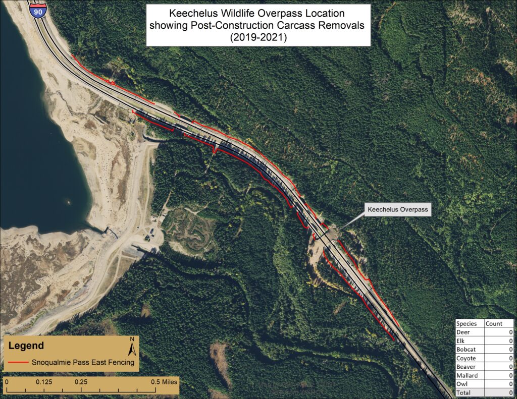 According to Wolf-Buck, eleven large wildlife crossing structures are currently completed, with a planned total of twenty-six large ones and many smaller ones. The Snoqualmie overpass was technically done in 2018, but fencing wasn’t added until 2019.