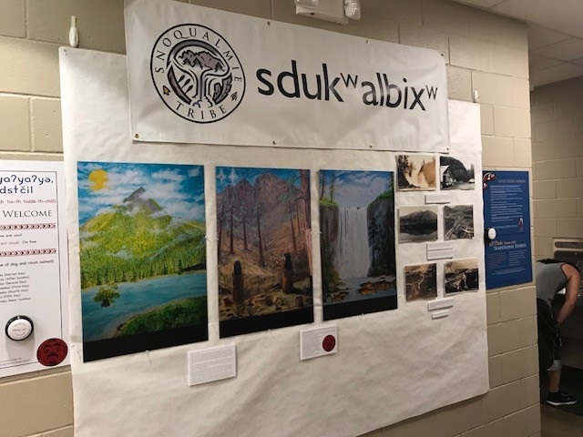 Through this partnership with the YMCA, the Snoqualmie Tribe has installed a temporary exhibit that provides an interactive learning opportunity to hear the Lushootseed language and view replicas of paintings that depict portions of the Tribe’s Creation Story. The exhibit also includes historic photos of the Snoqualmie Valley.