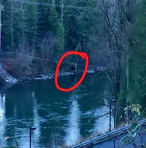 So why is all this coming up now? Well recently a picture showed up on the Snoqualmie Ridge Facebook page of…something. It was on the Snoqualmie River near the Salish Lodge and looked big and kind of, well, odd Some said it was a uprooted tree. Others said it was a bear, Elk, Slender Man. A river monster, alien and giraffe all were also floated as possibilities, but the most popular opinion seemed to be that it was distinctly Squatchy.