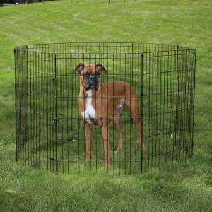 The Ex PenIt’s kind of like a metal play pen for dogs. Chew and pee proof. I bought mine when my dog was very young to aid in potty training. It can be made ex penas large or small as you need it – and has been a wonderful tool throughout her 13 years. It’s helpful to confine a young, spunky pup; can be used to block off doorways; to confine or separate dogs/cats; or simply to be able to leave doors open in the summer without losing your pooch. Depending on how large you go they can be pricey but it is useful throughout their entire lives.