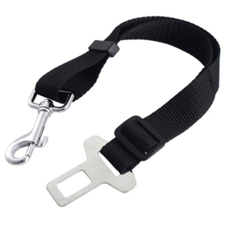 A Dog Seat BeltI wince every time I see a dog loose in a car or ridingseatbelt on mom’s lap in traffic. Not only is that a huge distraction for mom, but it’s dangerous for your pooch. If you were to have a wreck, two things could happen: 1) the airbag could crush your dog; or 2) the dog could fly through the windshield. Dogs should ALWAYS be restrained in the car – away from an active airbag. I tried many types of seatbelts, but I like the type that hooks right into your existing belt clasp on one end and hooks to a harness on the other.