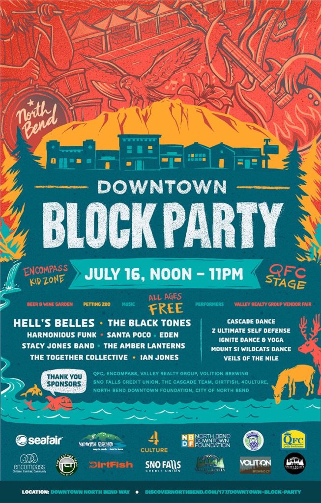Downtown Block Party activities will include a full day of local and regional music and performances on the large QFC stage, with the backdrop of Mt. Si and summer skies. Learn more about the music and performance line-up HERE.