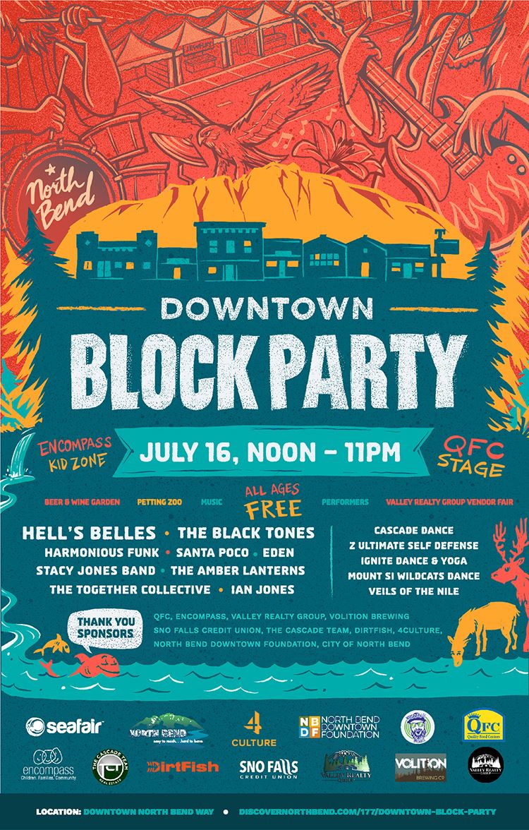 After two years of pandemic-related festival cancellations, the community is invited to celebrate together once again at the 12th annual Downtown Block Party, located in the Historic District of North Bend. Block Party will be held from noon to 11 p.m. on Saturday, July 16th.