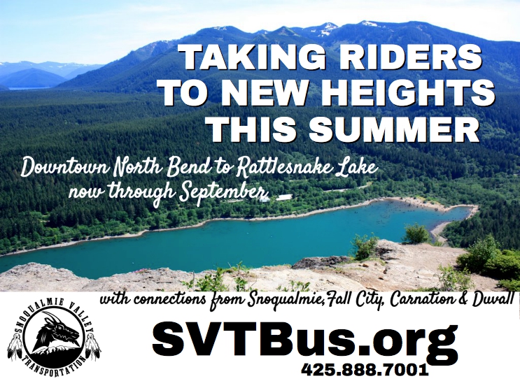 With this move, the non-profit SVT reminds residents why it’s such a valuable community resource. With connections to this bus from Snoqualmie Falls and every town in the Snoqualmie Valley, SVT says not only does it transports local residents to work, shopping and services, it’s also a Snoqualmie Valley tour bus which serves tourists and locals alike.