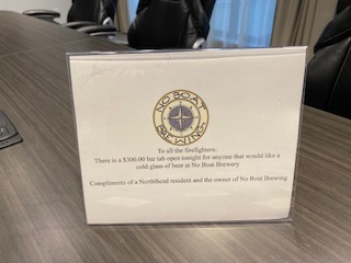 Wednesday night, using those contributions, Keri and Amanda ordered 22 pizzas & 15 salads from Mod Pizza and provided a $300 credit, including $100 from Gary Skiba, for the firefighters at No Boat Brewery. The meal finished with six dozen cookies from the North Bend Bakery.