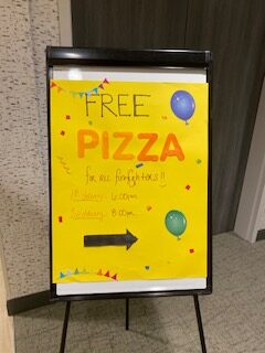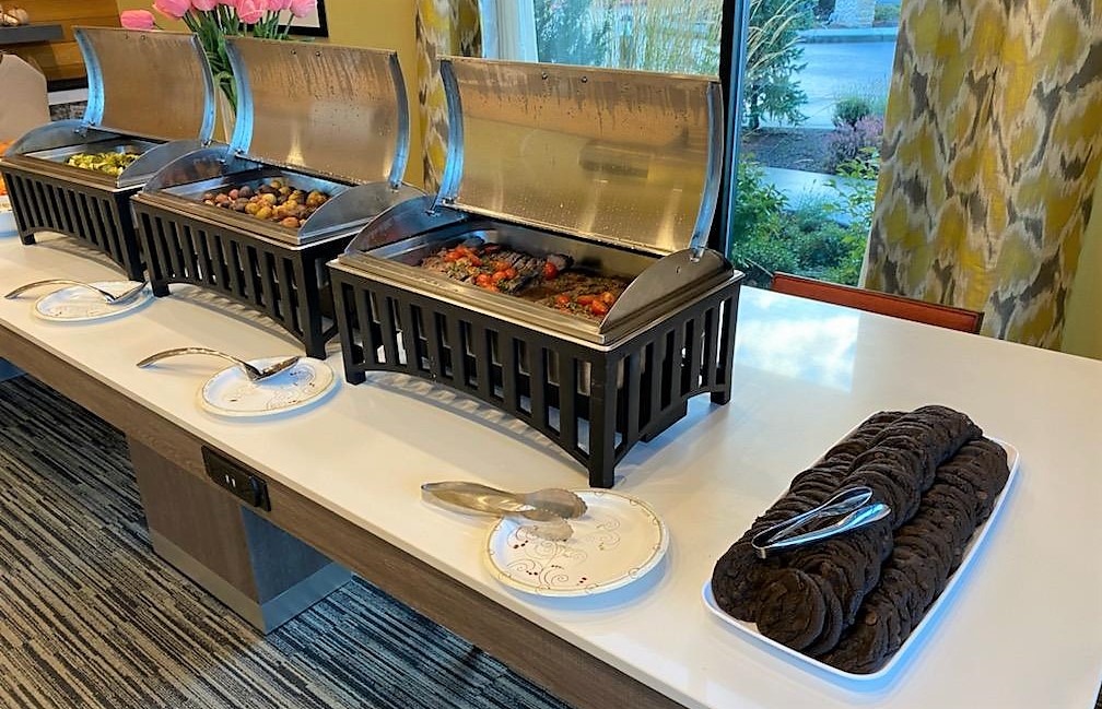 After communicating with Hays at the hotel, the first wave of food was planned for 6 pm and the second wave by 8. Estes left the hotel at 6:30, a little worried they were giving a dinner party that no one would attend! However, when her husband returned at 7:30 for round two, all the salads and pizza were gone, and round two disappeared in short order.
