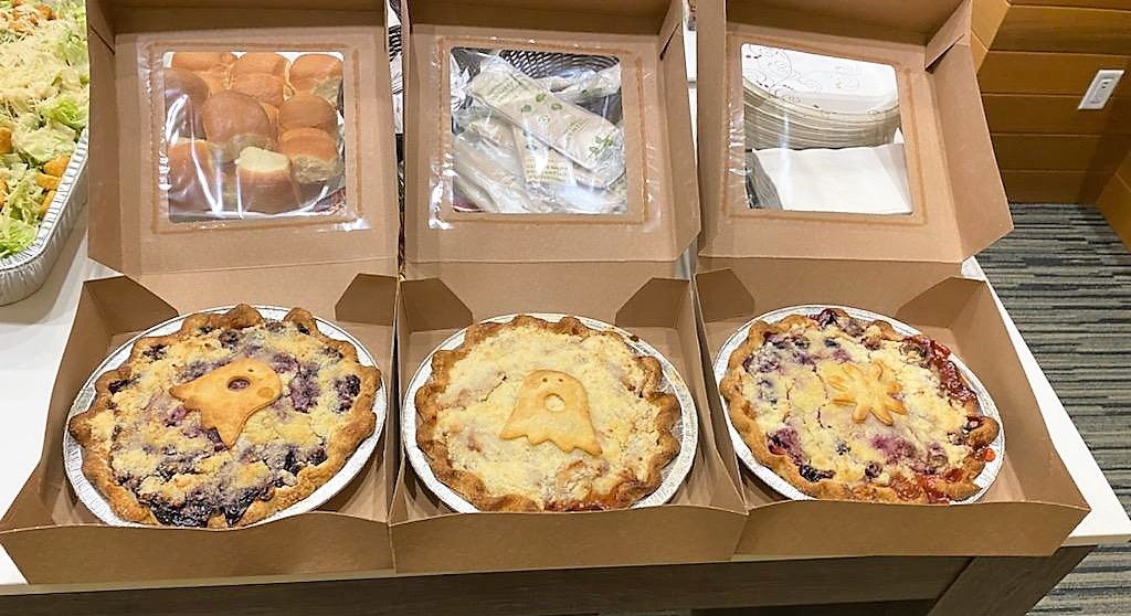 Now indeed a community-wide effort, Trail Youth brought cold brew, as did Vintage Baristas, along with scones. South Fork offered meal discounts, and pies were purchased using donated funds from Chickadee Bakeshop, who also dropped off goodies early on at the hotel.