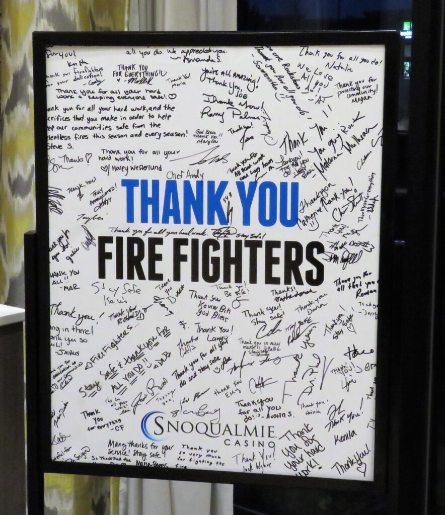 So, the fire crews are slowly checking out and moving on, but the Snoqualmie Valley can be very proud that we took good care of those helping us. Give yourselves a well-deserved pat on the back!