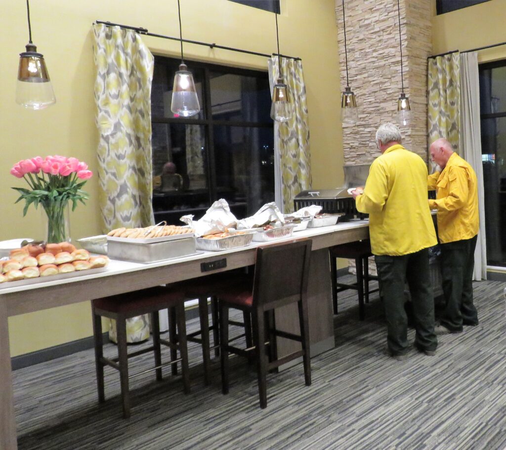 It quickly became apparent that the valley’s charitable nature was more significant than the number of firefighters, so we began to call valley first responders. Soon, in addition to the fire crews, we had happy police and hospital workers eating the excellent food provided by so many.