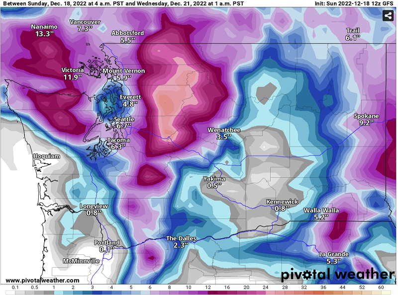 Accumulated snowfall totals from Sunday night through Wednesday could total 12 to 16 inches, with most of that falling Monday night into Tuesday. There are currently no Advisories or Warning from the NWS, but I expect that to change today into Monday.