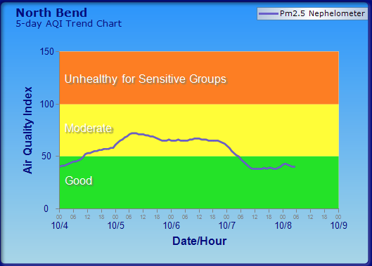 Last night a light bulb went on. I checked the Puget Sound Clean Energy Agency website and discovered the valley’s air quality had made it to “moderate” levels which means “unusually sensitive people should consider reducing prolonged or heavy exertion.” Our problem was our windows were open all weekend and our daughter ran around on a Snoqualmie soccer field, creating the exposure to trigger her asthma. I asked on Facebook if any others were suffering and the answers came in quickly – yes.