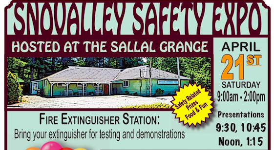 The Sallal Grange in North Bend invites the community to join them for the SnoValley Safety Expo on Saturday, April 21st from 9AM – 2PM. Community members can learn how to prepare for emergencies, how to stay safe.. AND have fun doing it!