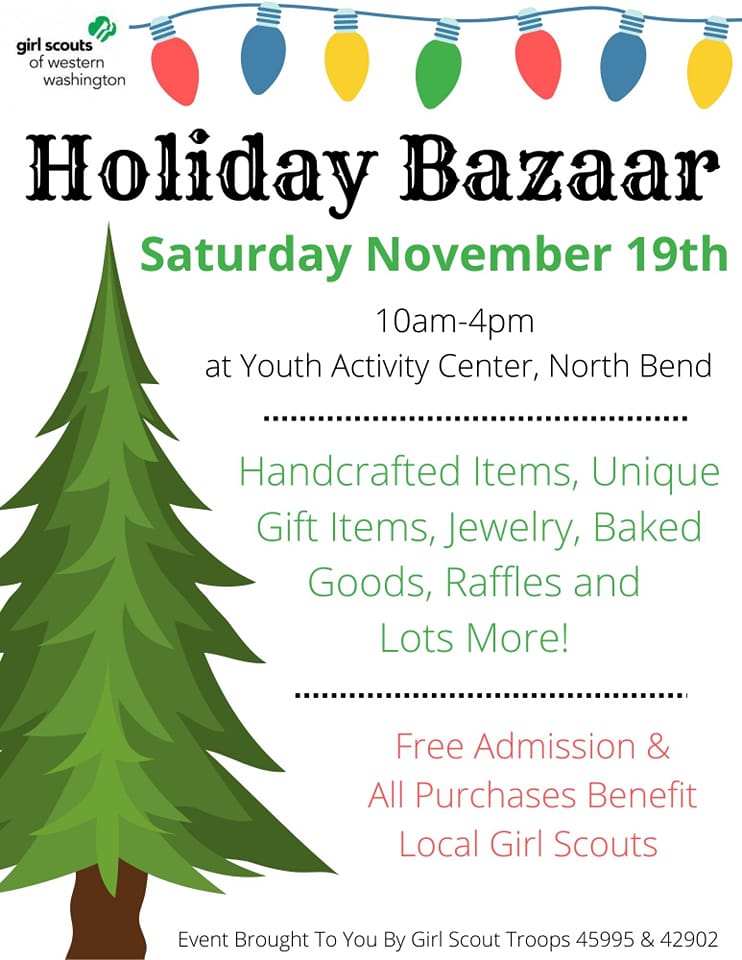 10 am – 4 pm Saturday, November 19th Snoqualmie Valley Youth Activity Center 1450 Boalch Ave NE, North Bend.