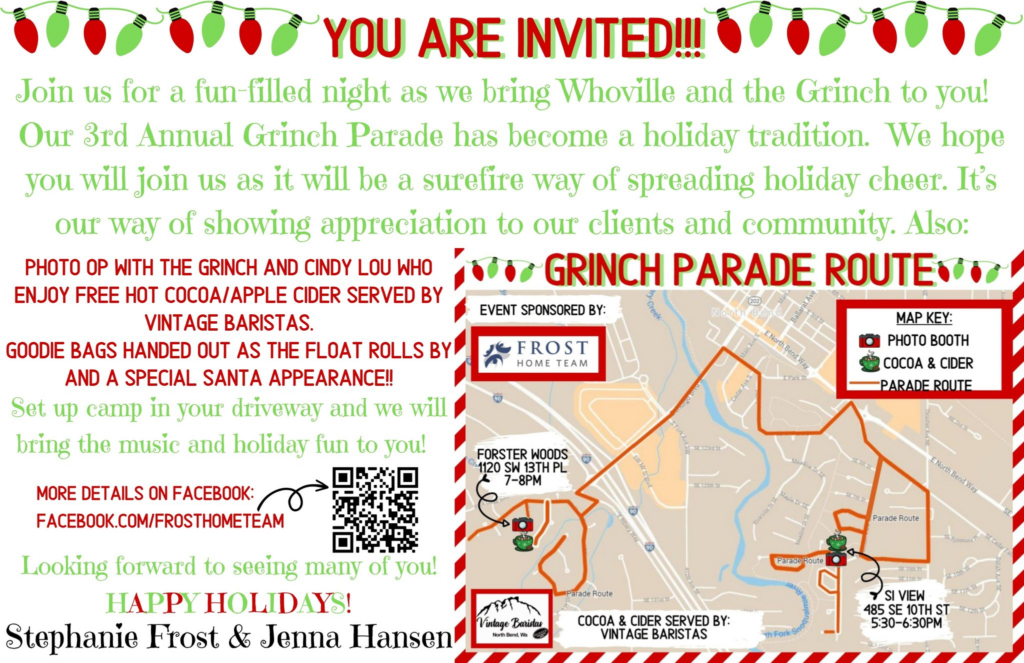 This tradition started in 2016 when a local Snoqualmie Valley real estate company, Frost Home Team, wanted to put on a private Grinch movie experience for their clients and the community. Doing something around the holidays seemed like the perfect fit.