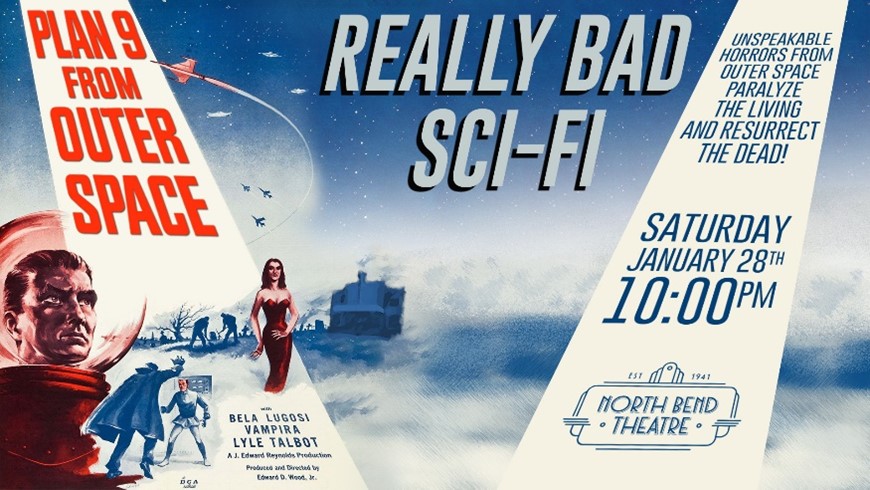 Both film series will kick off this weekend. First up is Really Bad Sci-Fi on January 28th at 10:00 pm with Plan 9 from Outer Space (1959), the epitome of the “so-bad-it’s-good” cinema. These types of B films from the 1950s and 1960s were serious attempts at science fiction but end up spoofing everything from the plot to special effects. “They are so much fun to watch,” says Burrows. “We’re picturing a Mystery Science 3000 Theater experience.”