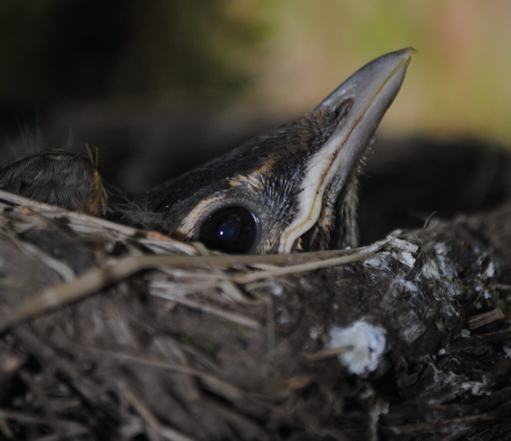 Baby robin in a nest | Photo credit: Arnold Hampton