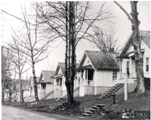 Reinig Road’s Riverside Neighborhood, part of old Snoqualmie Falls mill town, photo courtesy of The Snoqualmie Valley Historical Museum