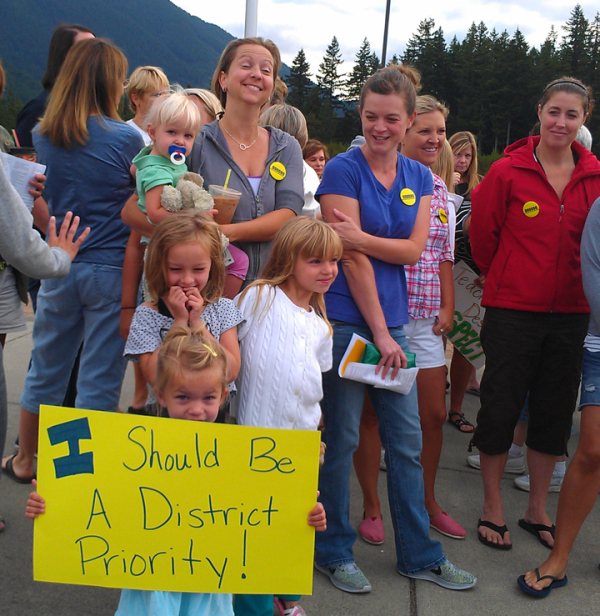 As a special education teacher in the Snoqualmie Valley School District I was appalled to hear this morning that the district now suggests that our special needs students should NOT be included in class size counts. This is when this negotiation got personal for me. It is the right of ALL children to be given an opportunity to access the general education curriculum to the fullest extent possible. I have spent my teaching career working to collaborate with my general education coworkers in order to achieve this goal. These students should be counted! Now, I might be persuaded to understand the district’s point of view if all of our students receiving specialized services in the district were in special education self contained classrooms. But this is NOT the case nor should it be! At the beginning of this school year I was thrilled to hear that one of my students passed the Science portion of the state’s Measurement of Student Progress (MSP). I would like to think that this student’s 5th grade teacher and I working together to help this student access the science curriculum might have had something to do with her success on this exam. But according to the district’s proposal, this child would NOT count.