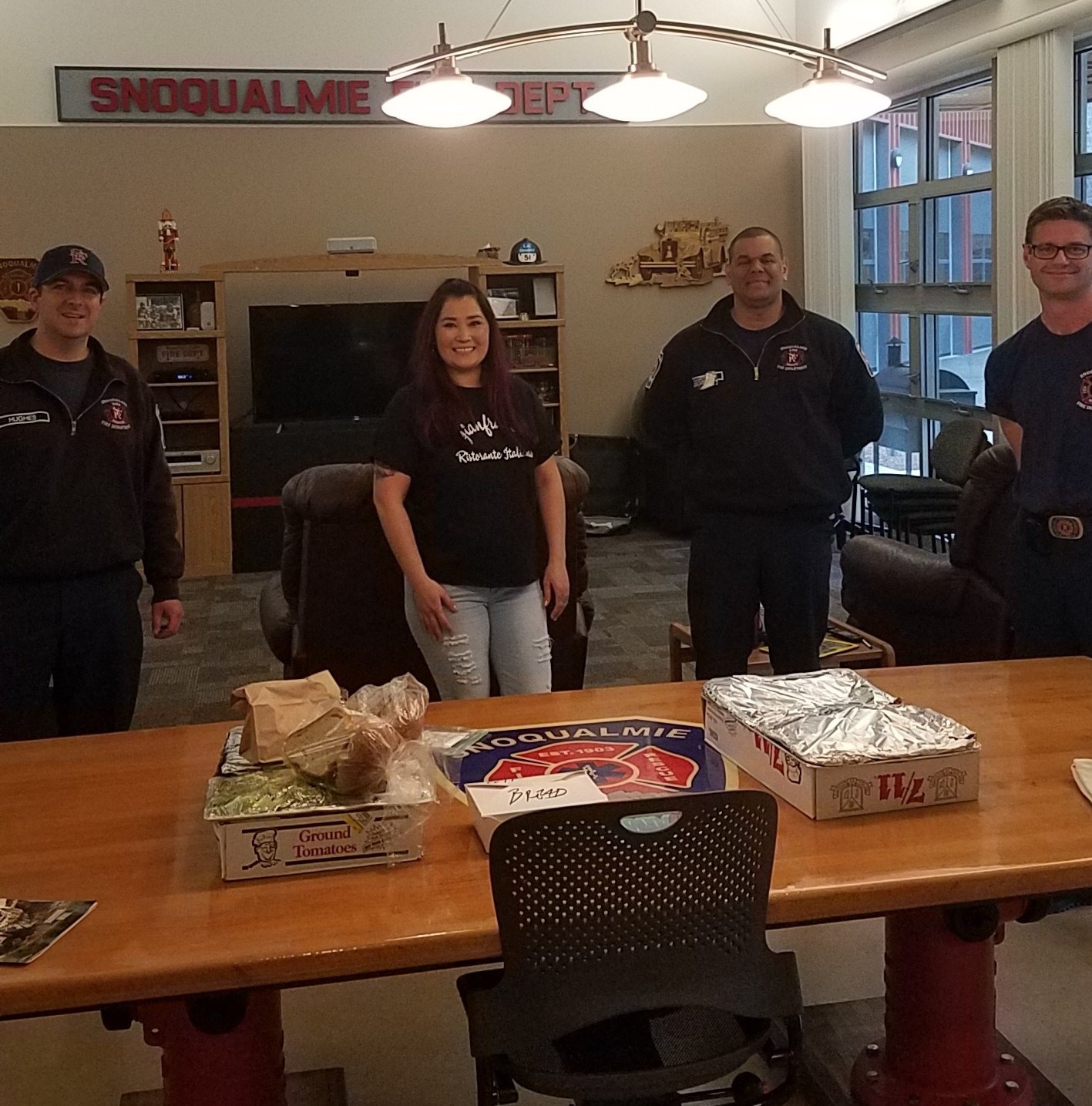 Some restaurants that have delivered meals to the Snoqualmie Fire Station include Rio Bravito, Aahaar and Gianfranco Ristorante.