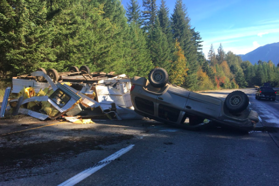 The Washington State Patrol (WSP) reported at 11:25AM, October 11th, that a SUV hauling a trailer traveling on eastbound I-90 went out of control and rolled – west of North Bend near Winery Road/exit 27.
