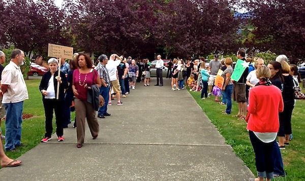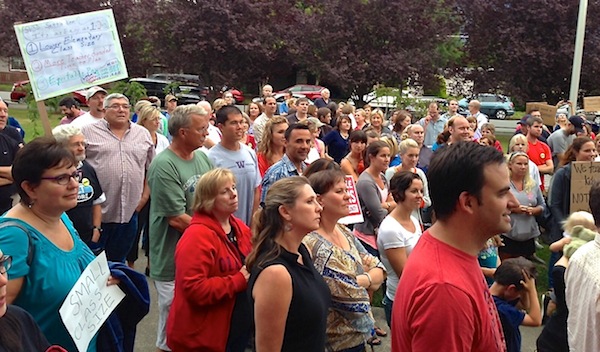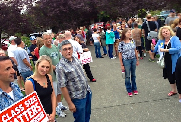 It’s estimated that 100 Snoqualmie Valley teachers showed up at Wednesday night’s school board meeting, rallying on the front lawn of the District Office and pressing the school board for an acceptable contract. Union members say they want the board to make teachers and class size a priority.