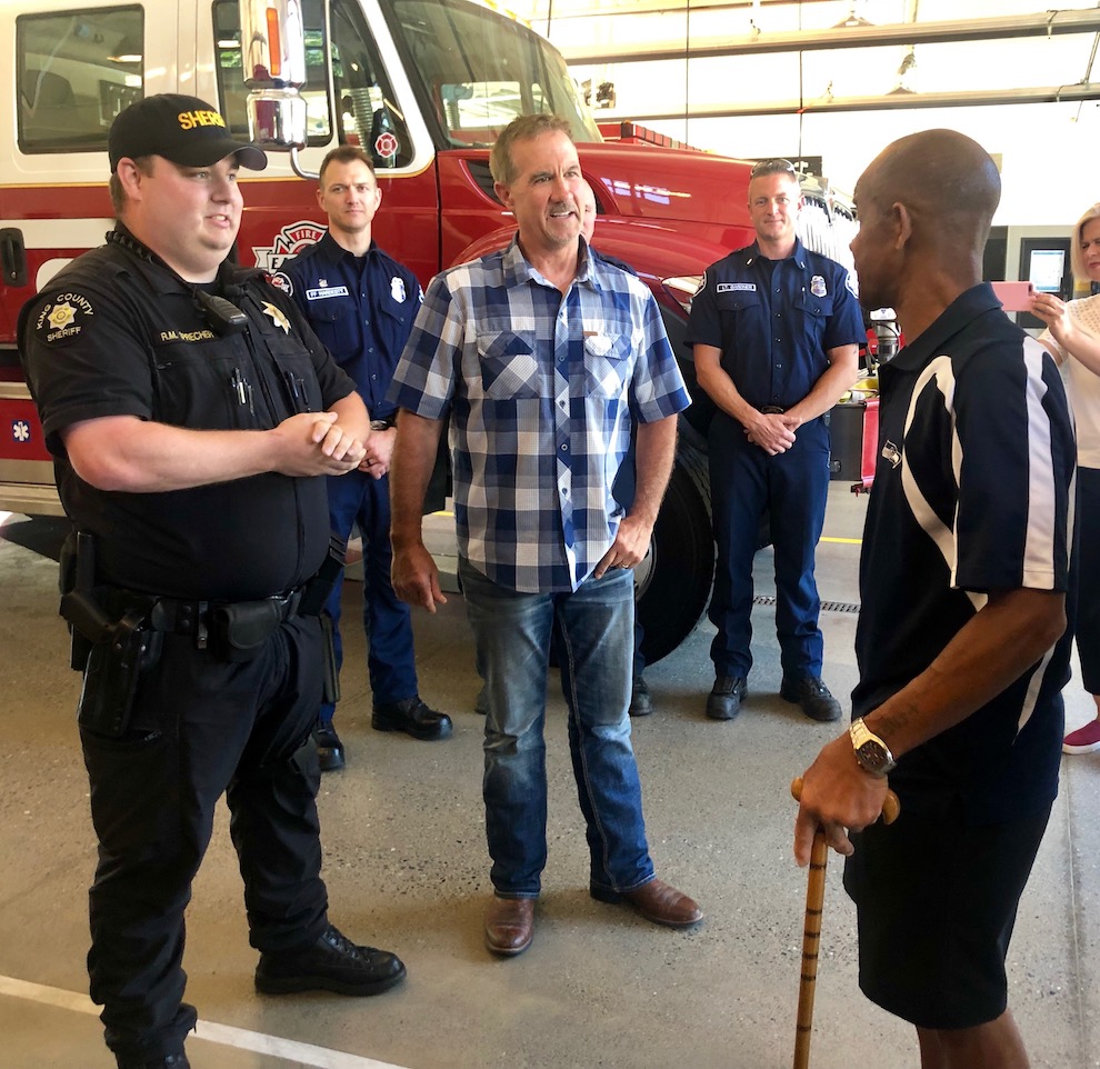 It was a happy day at the North Bend Fire Station, Tuesday, June 11th when first responders and a good samaritan were reunited with Darrell Buckingham, whose life they saved the day after Christmas 2018.