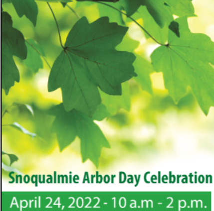 Snoqualmie celebrates its Tree City USA status and commitment to the environment with an Arbor Day event on April 24, 10 a.m. to 2 p.m. at Centennial Fields, 39903 SE Park Street, and you’re invited!